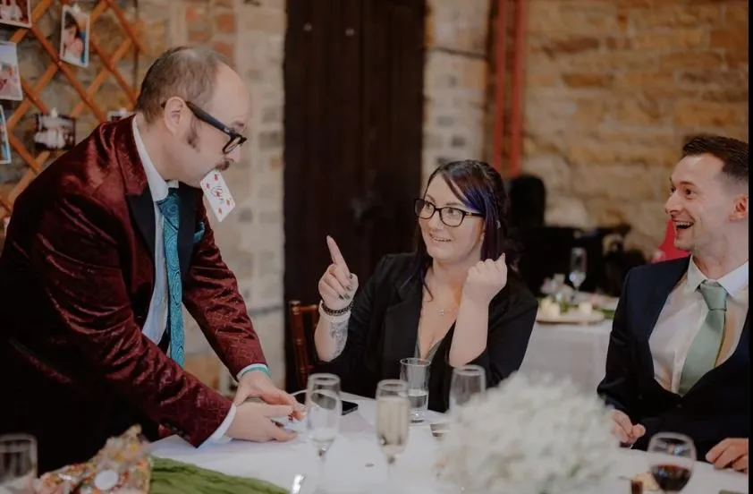 Neil specialises in close-up magic for weddings, private parties, and corporate events. Whether it's an intimate dinner party for a few guests, a wedding reception of 80 people, or a corporate gala dinner for 200+, Neil tailors his performance to suit the occasion. He mingles amongst guests, creating spontaneous moments of astonishment and laughter throughout your event.